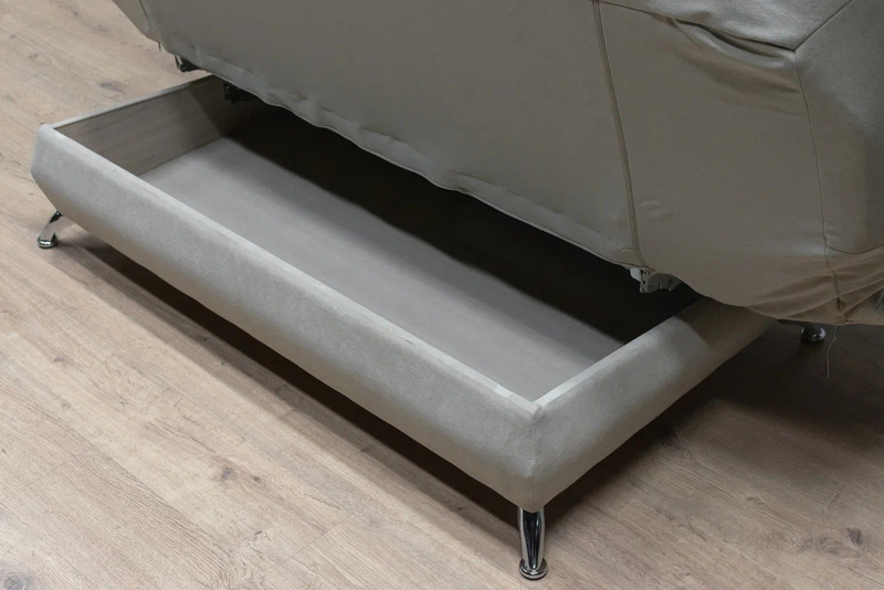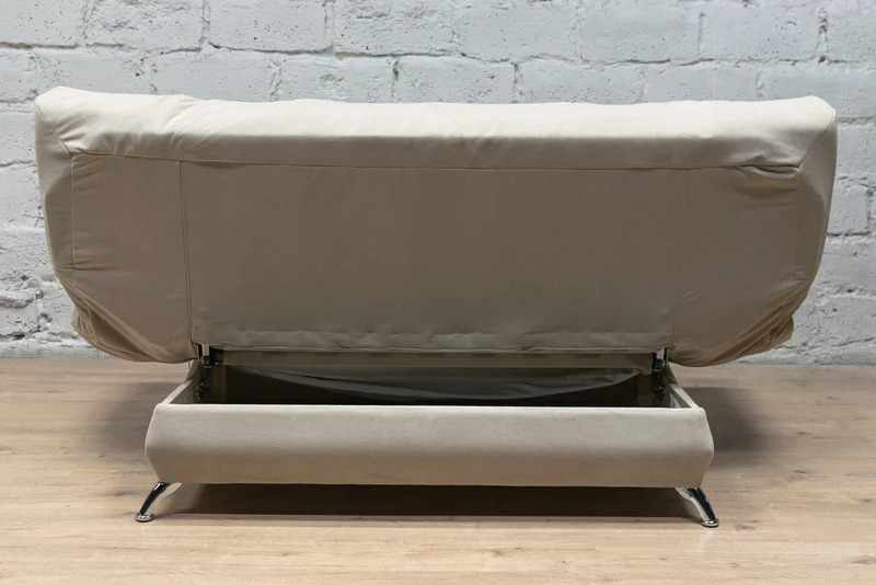 Диван просто и удобно раскладывается. Металлокаркас дивана дополнен ортопедическими гибкими латами, которые имеют свойство прогибаться под более тяжелыми частями тела, а более легкие поддерживать таким образом, что нагрузка на позвоночник распределяется равномерно.