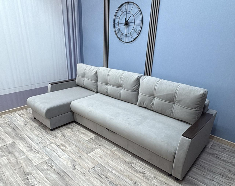 Угловой диван "ЕвроМакс" Большой диван - незаменимый предмет мебели, особенно если у Вас большая семья или всегда много гостей. Диван ЕвроМакс ДУ имеет два вместительных короба для постельных принадлежностей. Механизм трансформации "Пантограф" (Тик-Так) с легкостью превратит диван в кровать с ровным спальным местом. Съемные подлокотники упрощают процесс транспортировки.