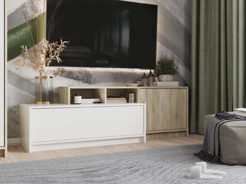 Главная/ Каталог / Мебель для гостиной / Модульные системы для гостиной / Модульная гостиная Эдем (РСТ) / Тумба под ТВ с выступом Эдем-1 (РСТ)