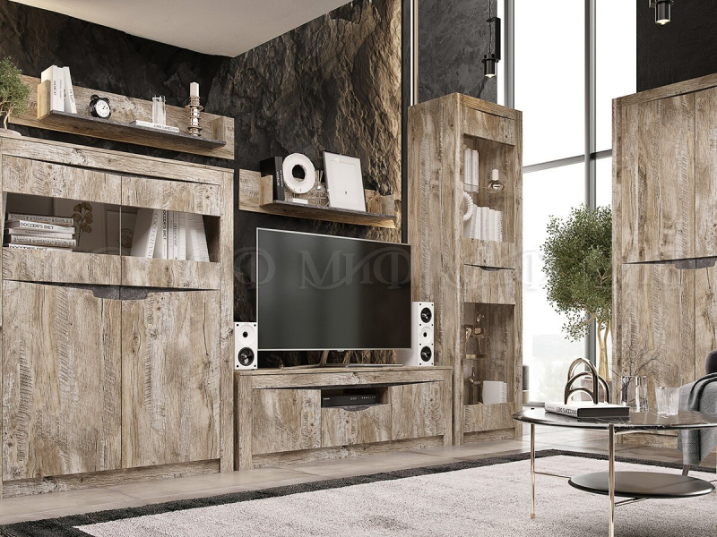 Главная/ Каталог / Мебель для гостиной / Модульные системы для гостиной / Модульная гостиная "Ривьера" (МФ) / Шкаф 2-х створчатый с полками "Ривьера" ЛДСП (МФ)