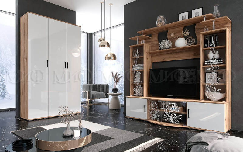 Главная/ Каталог / Мебель для гостиной / Модульные системы для гостиной / Модульная гостиная "Виста" (Миф) / Стенка ЛДСП "Виста" (МФ)