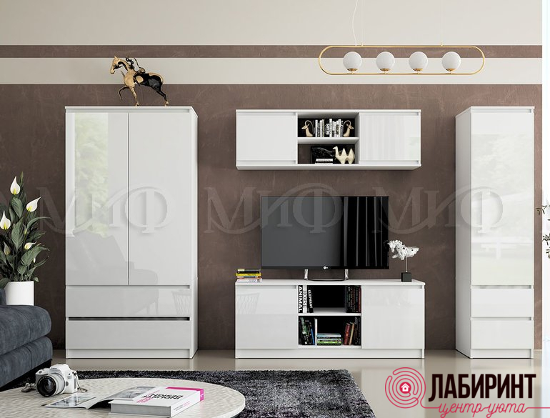 В комлект входит: Полка открытая (Антресоль), Тумба ТВ, Шкаф 2х ств, Пенал 1 ств