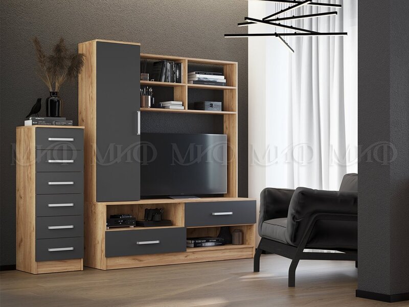 Главная/ Каталог / Мебель для гостиной / Стенки / Гостиная "Мартина" центральная секция ЛДСП (МФ)