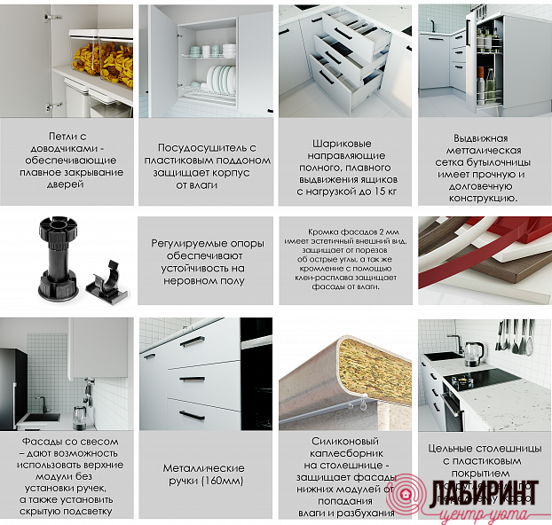 - Столешница: ЛДСП 26мм со скругленным краем (в пластике)