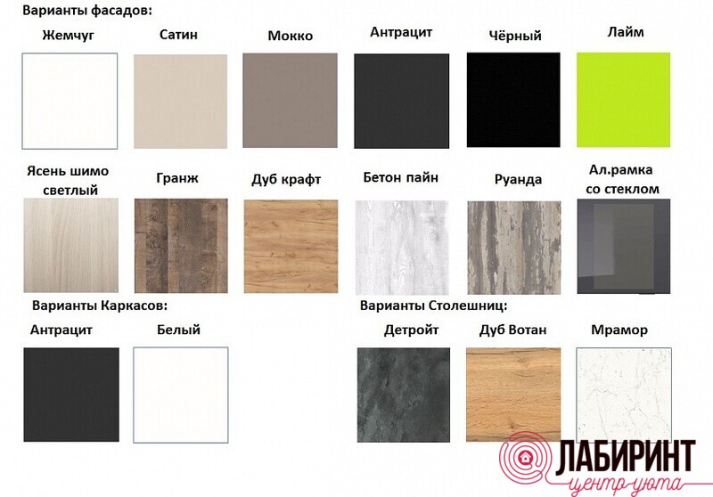 Нижние модули: Цвет корпуса: Белый/Фасады: Сатин/Столешница: Мрамор Марквина белый