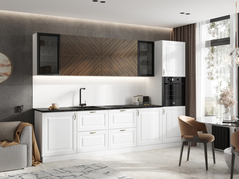 Главная/ Каталог / Мебель для кухни / Готовые кухонные гарнитуры / Кухня "Престиж" 3,0. Компоновка №1 МДФ (МФ)