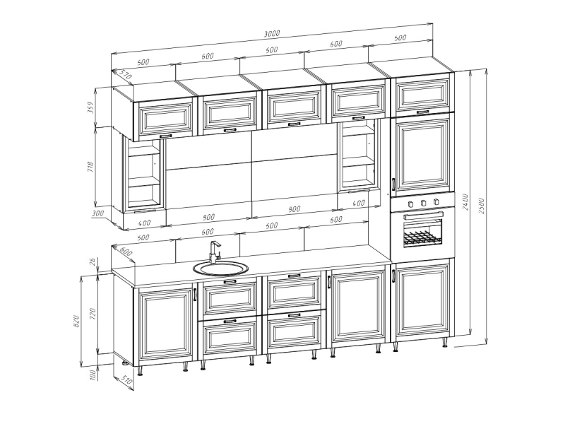 Посудосушитель, накладная мойка, стеновая панель, смеситель приобретается отдельно.