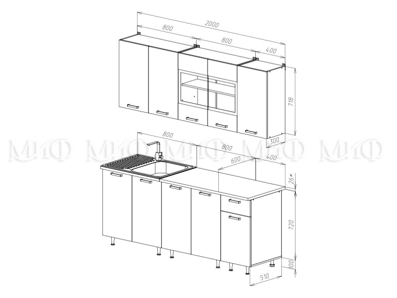 Посудосушитель, накладная мойка, стеновая панель, смеситель приобретается отдельно.