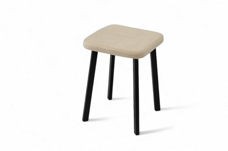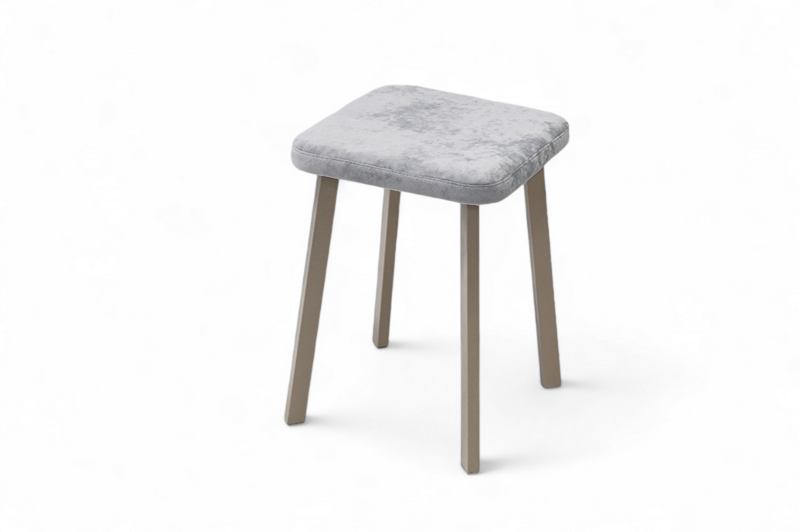 - Сиденье табурета обтянуто тканью, с использованием техники каретной стяжки.
