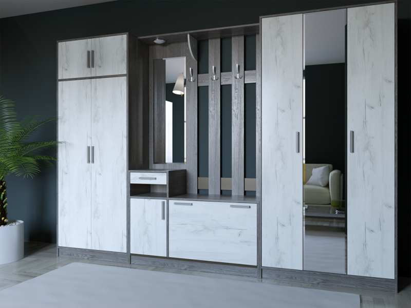 Ширина конструкции составляет 80 см, что позволяет эффективно использовать пространство в помещении. Внутри предусмотрены полки для организации порядка и удобного хранения различных предметов. Такая функциональная система поможет разместить одежду, обувь и аксессуары максимально компактно.