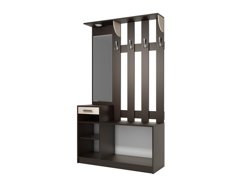 Вешалка «Диана-1» секция 14. Эта деревянная напольная вешалка с зеркалом станет стильным и функциональным решением для вашей прихожей. Идеально подходит для размещения одежды, аксессуаров и других вещей, необходимых в повседневной жизни. Компактный дизайн позволяет удобно использовать изделие как в просторных коридорах, так и в небольших помещениях.