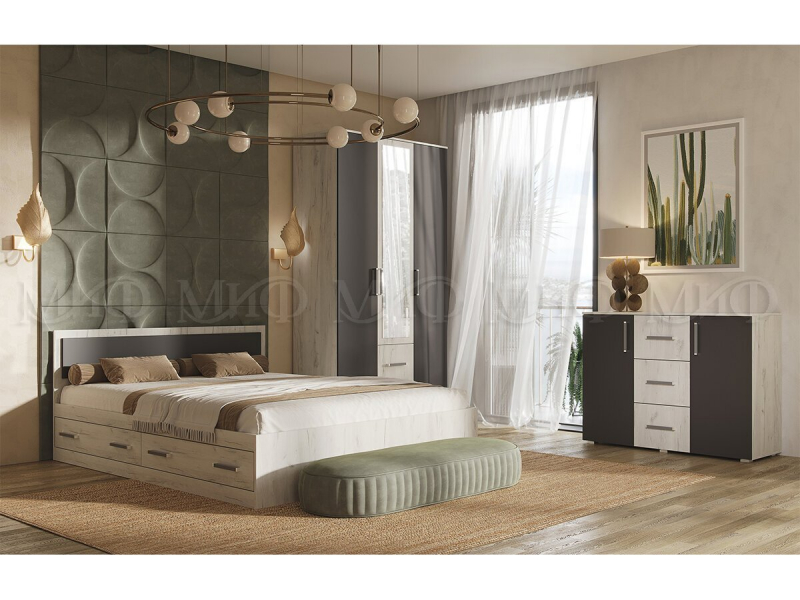 Главная/ Каталог / Мебель для спальни / Модульные системы для спальни / Модульная спальня "Фиеста Нью" ЛДСП (Миф) / Комод 3 ящика 2 двери "Фиеста Нью" ЛДСП (МФ)