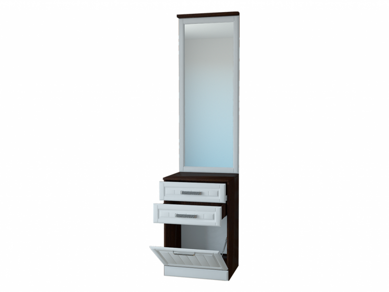 Зеркало с фацетом является главной акцентной деталью композиции и к тому же, оно визуально расширяет пространство. Выбрав нашу тумбу с удобными ящиками, оборудованными шариковыми направляющими полного выдвижения для своей прихожей или спальни, Вы без труда увеличите её площадь.